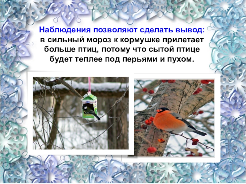птиц, потому что сытой птице будет теплее под перьями и пухом.