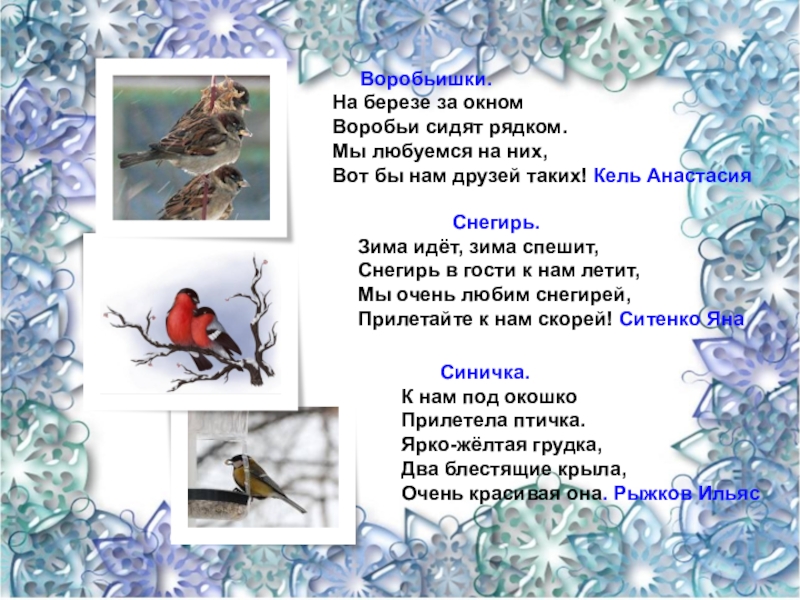 Мы очень любим снегирей,
