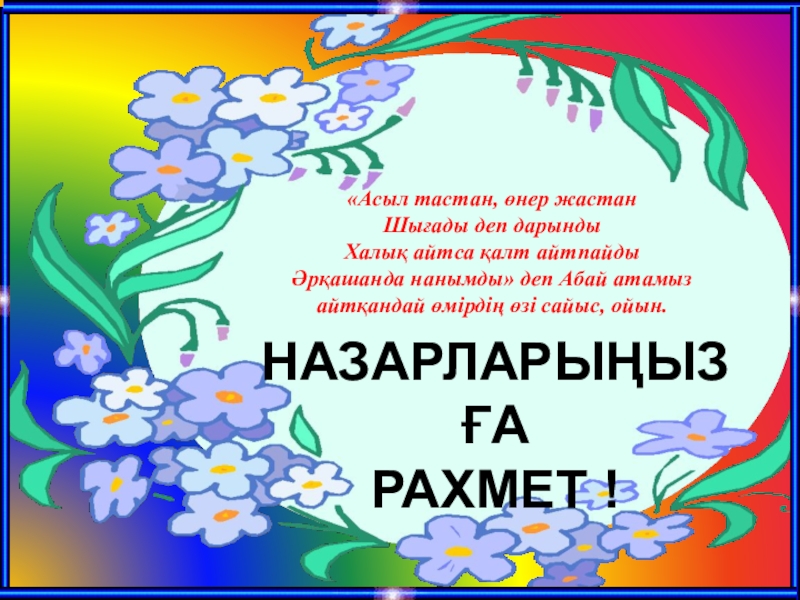 НАЗАРЛАРЫҢЫЗҒАРАХМЕТ !«Асыл тастан, өнер жастан Шығады деп дарынды Халық айтса қалт айтпайды Әрқашанда нанымды» деп Абай атамыз