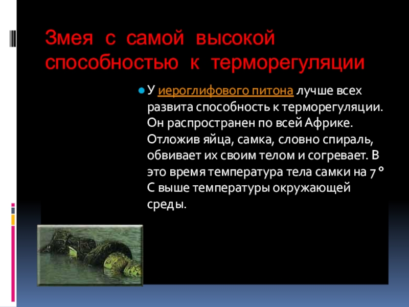 Слайд 15Змея с самой высокой способностью к терморегуляции