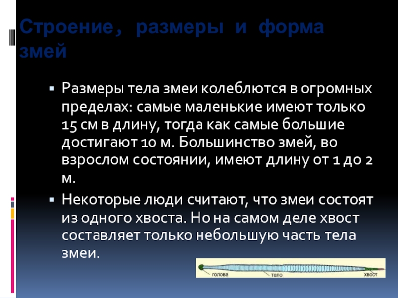 Слайд 4Строение, размеры и форма змей