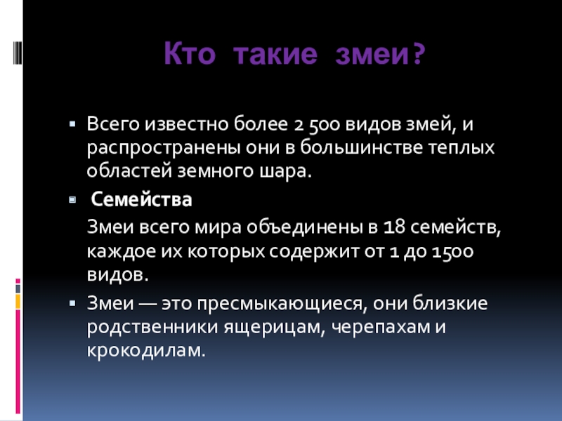 Слайд 3Кто такие змеи?