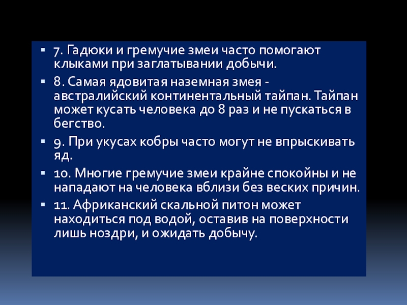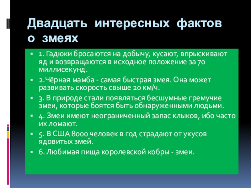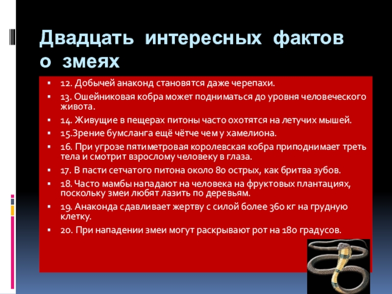Слайд 22Двадцать интересных фактов о змеях