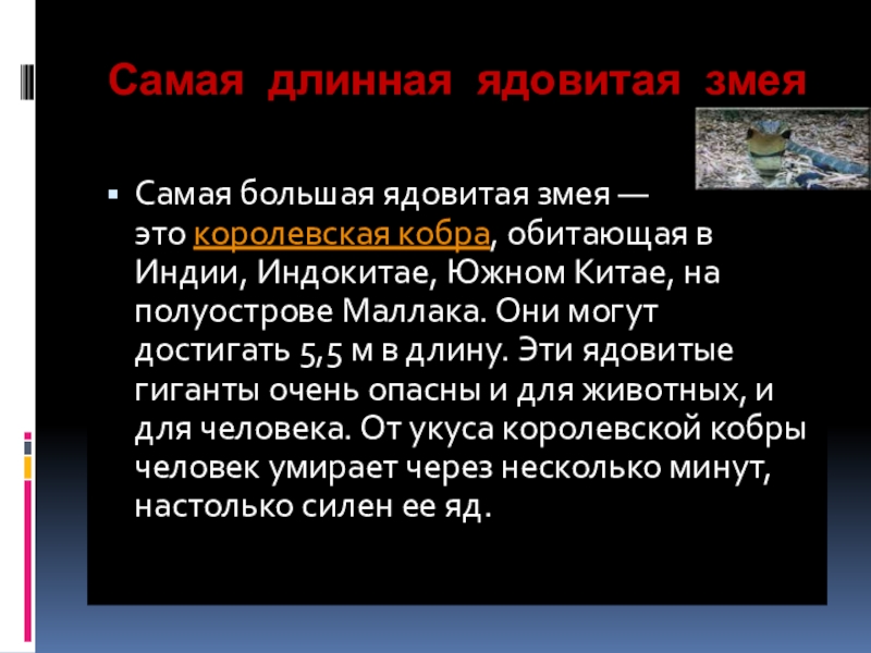 Слайд 13Самая длинная ядовитая змея