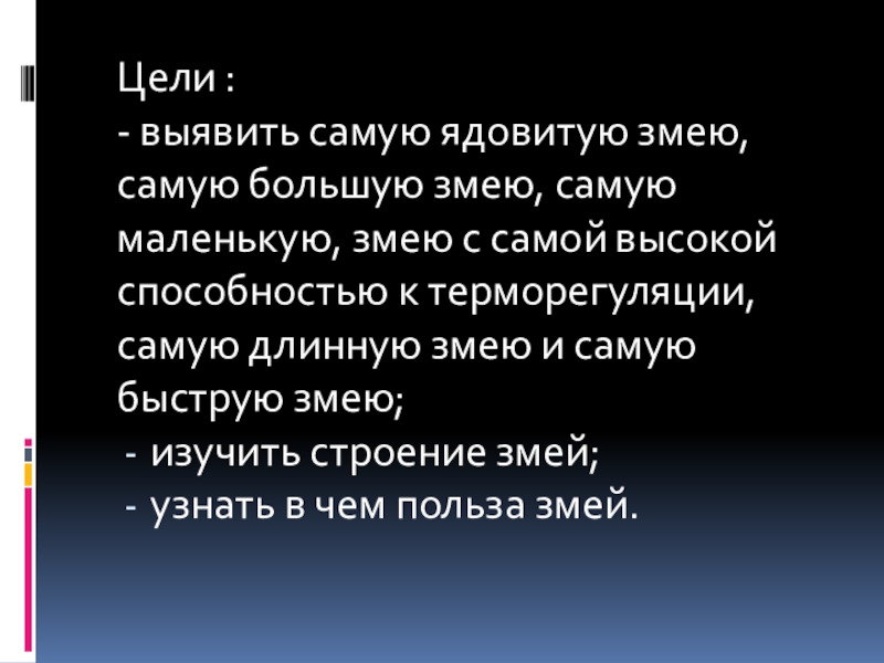 - выявить самую ядовитую змею, самую большую змею, самую маленькую,