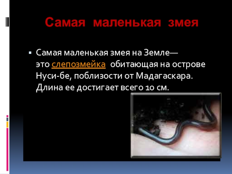 Слайд 14Самая маленькая змея