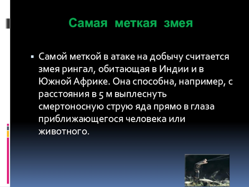 Слайд 20Самая меткая змея