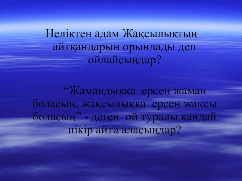 Слайд 6 Неліктен адам Жақсылықтың айтқандарын орындады деп ойлайсыңдар?