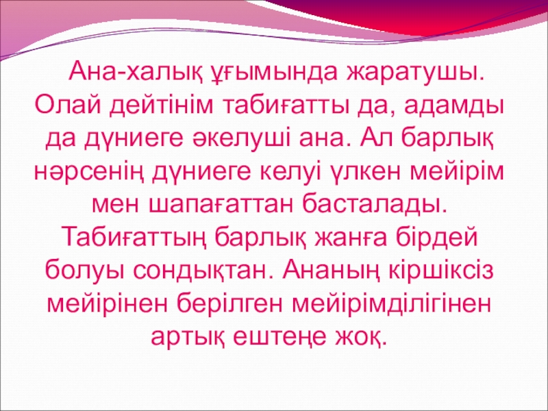Слайд 8 Ана-халық ұғымында жаратушы. Олай дейтінім табиғатты да, адамды да дүниеге