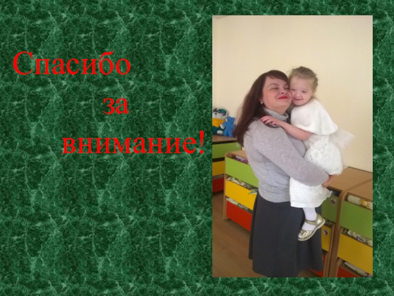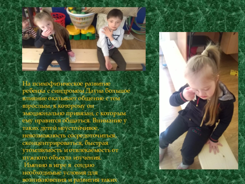Слайд 16На психофизическое развитие ребенка с синдромом Дауна большое влияние оказывает общение