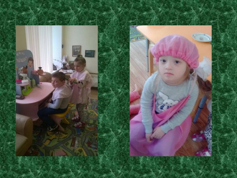 Слайд 11Играя в сюжетно-ролевую игру «Парикмахерская», игровые отношения между детьми с синдромом