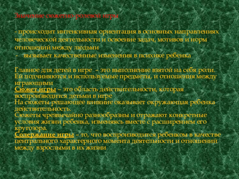 Слайд 9Значение сюжетно-ролевой игры