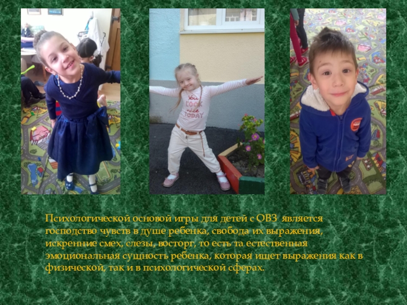 Слайд 24Психологической основой игры для детей с ОВЗ является господство чувств в