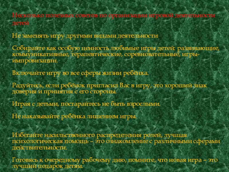 Слайд 28Несколько полезных советов по организации игровой деятельности детей