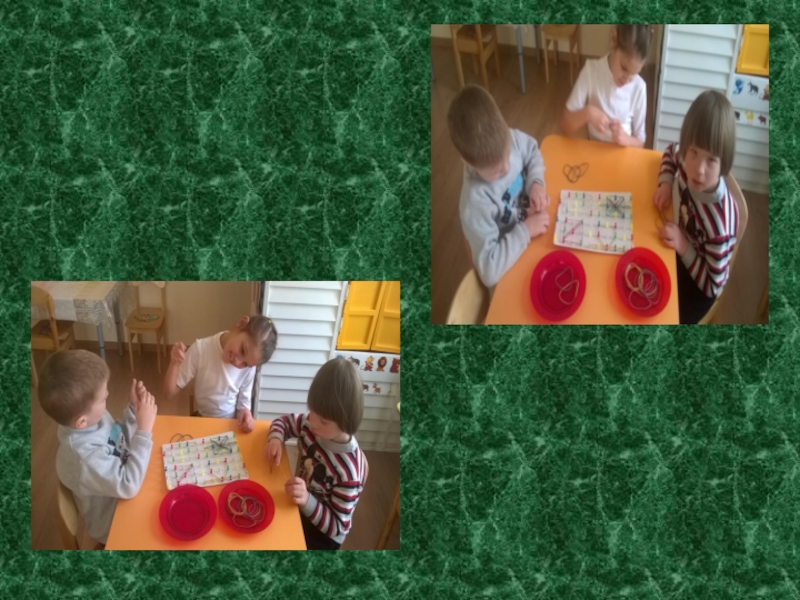 Слайд 37Дидактическое пособие “Разложи резиночки по тарелочкам”.