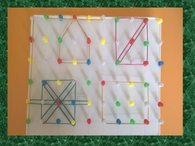 «Геоконт» - оригинальный конструктор. С помощью разноцветных резинок на игровом поле можно создавать геометрические фигуры различного размера, разноцветные контуры предметных форм окружающего мира, симметричные несимметричные узоры. Игра «Геоконт» развивает сенсорные и познавательные способности дошкольников. Самостоятельное конструирование геометрических фигур, когда задействуются зрительный и осязательно – тактильный анализаторы, способствуют формированию представлений об эталонах формы.