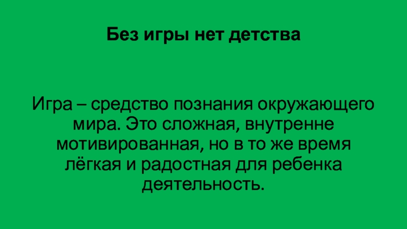 Слайд 2Без игры нет детства