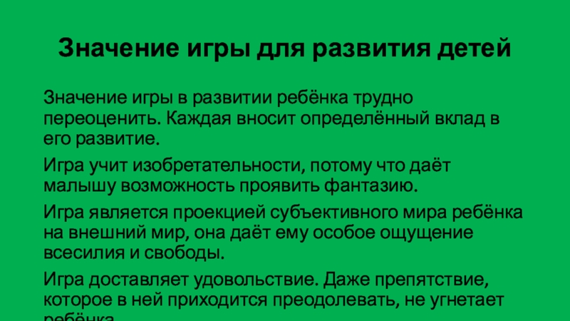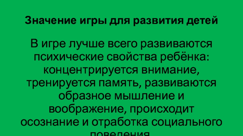 Слайд 15Значение игры для развития детей