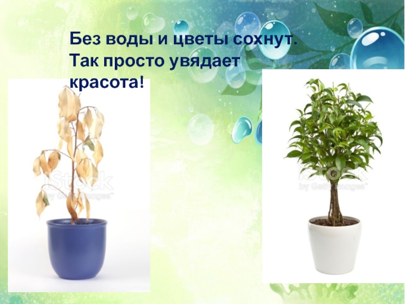 Слайд 7Без воды и цветы сохнут.