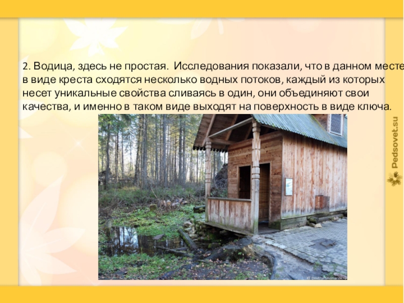 Слайд 52. Водица, здесь не простая. Исследования показали, что в данном месте