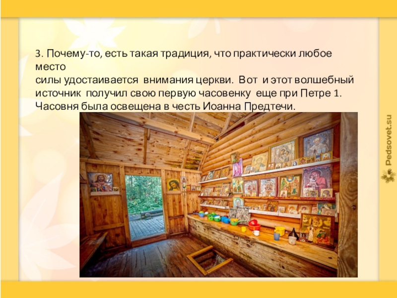 3. Почему-то, есть такая традиция, что практически любое местосилы удостаивается внимания церкви. Вот и этот волшебный источник