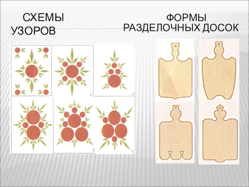 СХЕМЫ УЗОРОВ   ФОРМЫ РАЗДЕЛОЧНЫХ ДОСОК