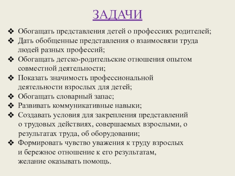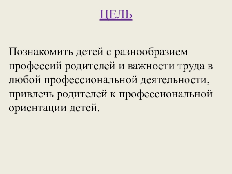 Познакомить детей с разнообразием профессий родителей и важности труда в любой