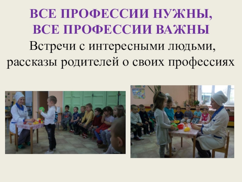 своей профессии, показала детям в чем заключается ее работа. Дети сделали вывод, что данная профессия тоже очень важна.