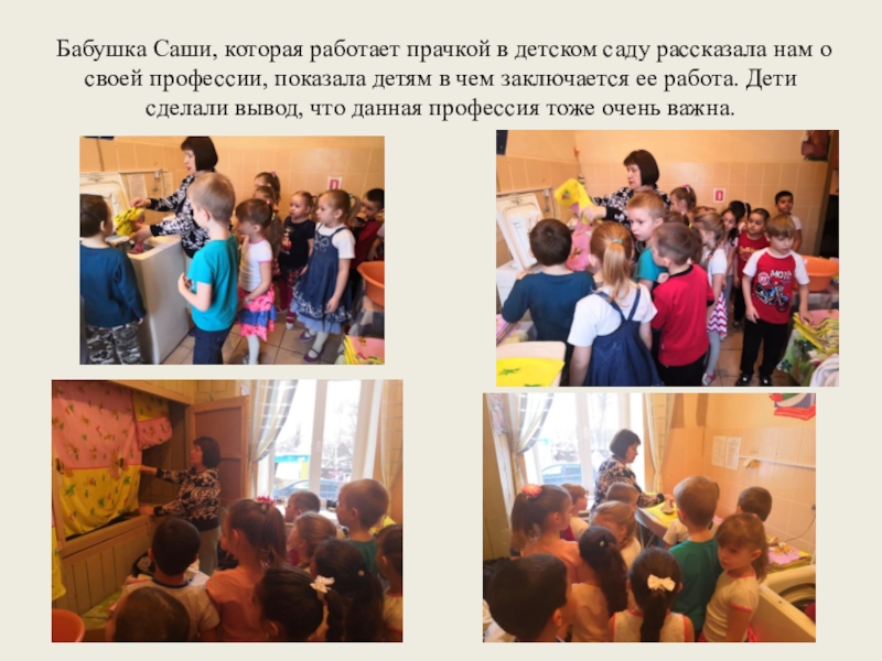 Слайд 23Бабушка Саши, которая работает прачкой в детском саду рассказала нам о