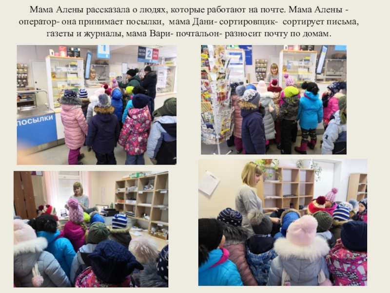 Слайд 17Мама Алены рассказала о людях, которые работают на почте. Мама Алены