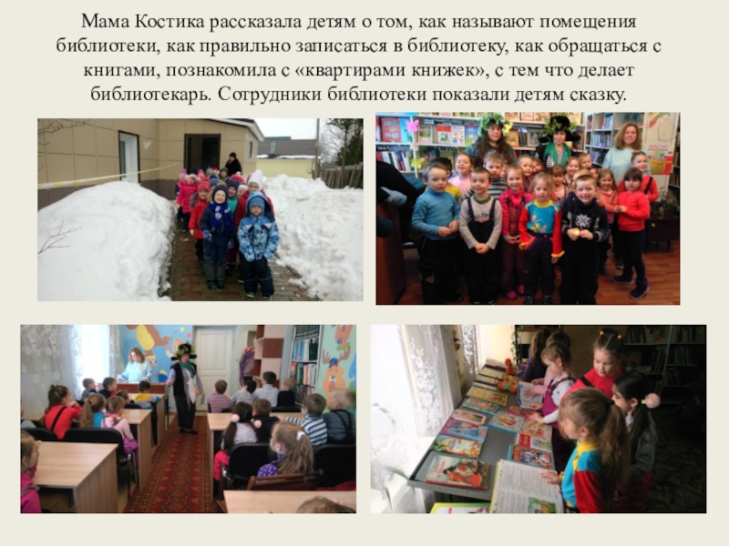 Слайд 21Мама Костика рассказала детям о том, как называют помещения библиотеки, как