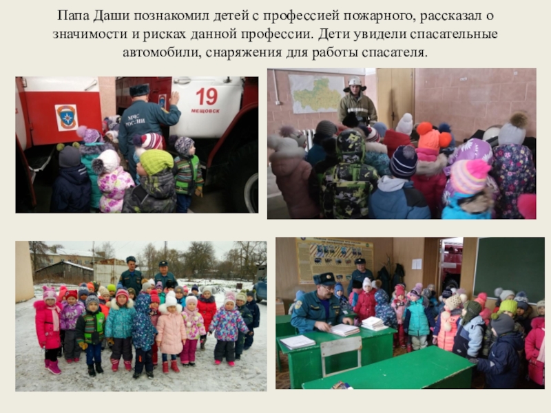 Папа Даши познакомил детей с профессией пожарного, рассказал о значимости и