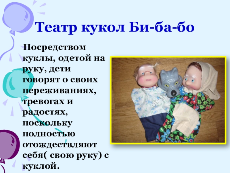 Театр кукол Би-ба-бо  Посредством куклы, одетой на руку, дети говорят о своих переживаниях, тревогах и радостях,