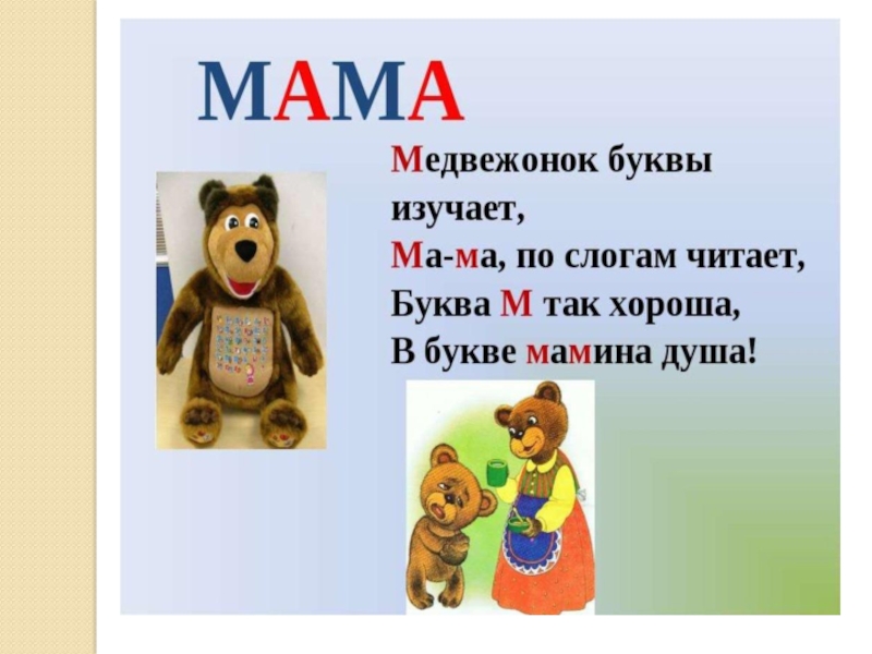 Презентация, доклад на тему Знакомство с алфавитом. звук и буква М
