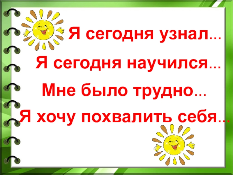 Мне было трудно…Я хочу похвалить себя…Я сегодня узнал…Я сегодня научился…