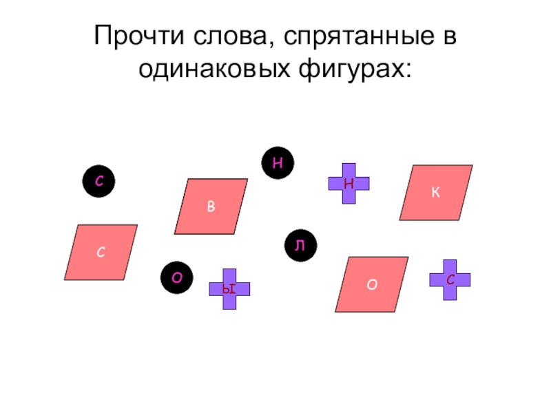 Прочти слова, спрятанные в одинаковых фигурах:НСЛОВСКОЫНС
