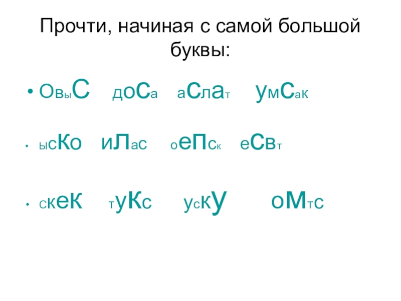Слайд 10Прочти, начиная с самой большой буквы: