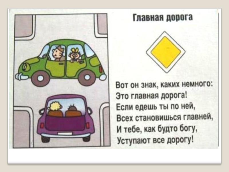 и дорогах. По этим знакам водители узнают, где можно ехать, а где нельзя, где можно остановить машину и заправить бензином. Знаки предупреждают об опасности на дорогах, указывают направление движения. Эти знаки должны знать и пешеходы!