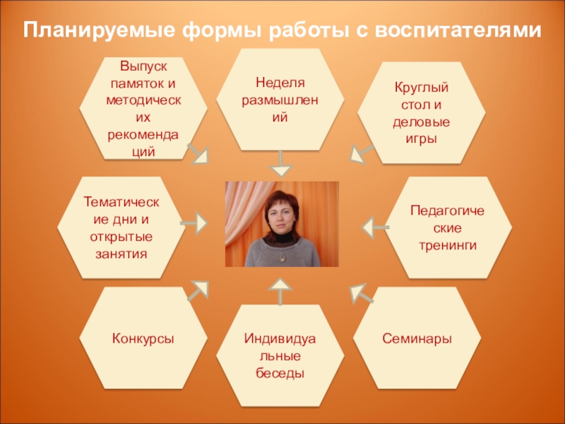 Слайд 15Планируемые формы работы с воспитателями
