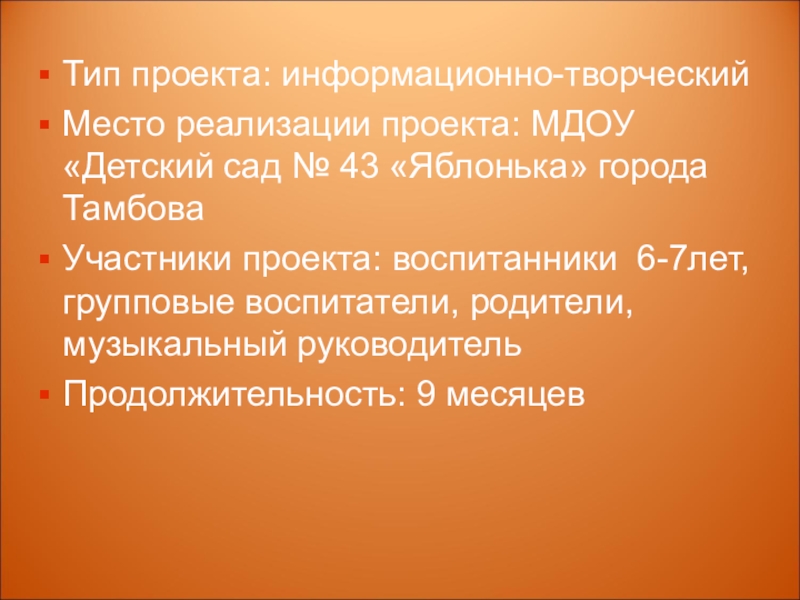 Место реализации проекта: МДОУ «Детский сад № 43 «Яблонька»