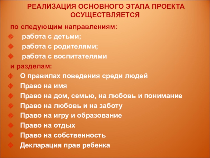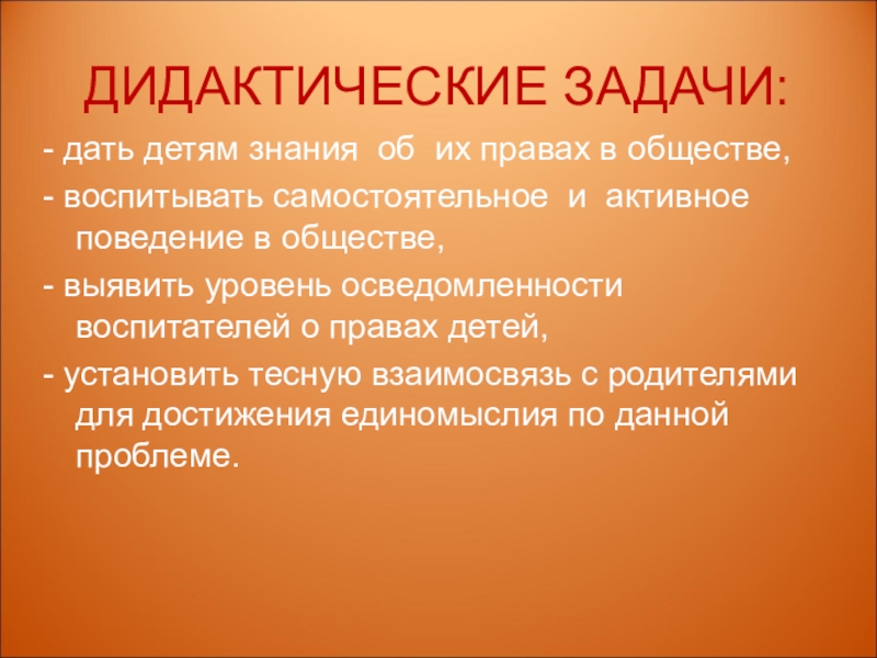 - дать детям знания об их правах в обществе,