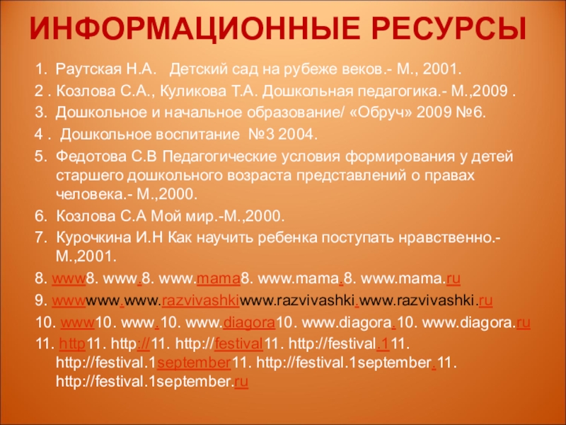 1. Раутская Н.А. Детский сад на рубеже веков.- М.,