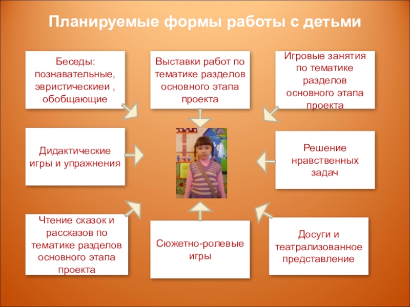 Слайд 13Планируемые формы работы с детьми
