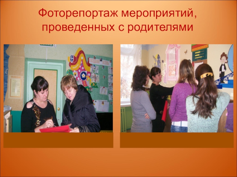 Слайд 27Фоторепортаж мероприятий, проведенных с родителями