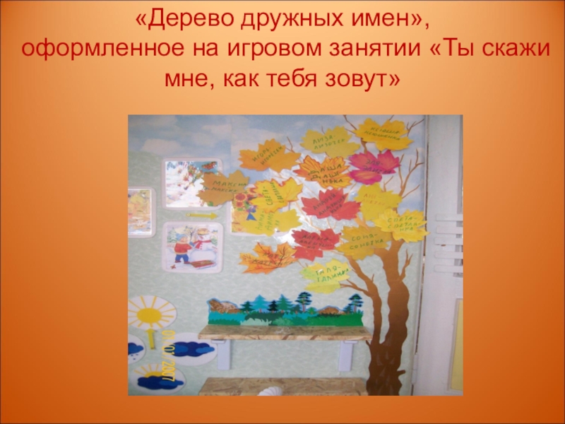 «Дерево дружных имен», оформленное на игровом занятии «Ты скажи мне, как тебя зовут»