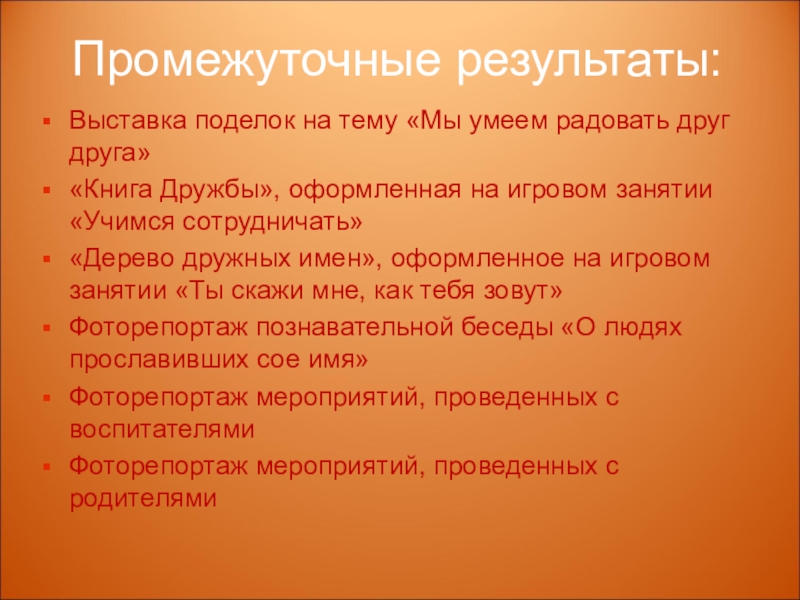 Слайд 21Промежуточные результаты:
