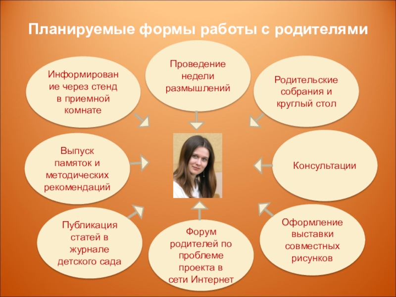 Слайд 14Планируемые формы работы с родителями