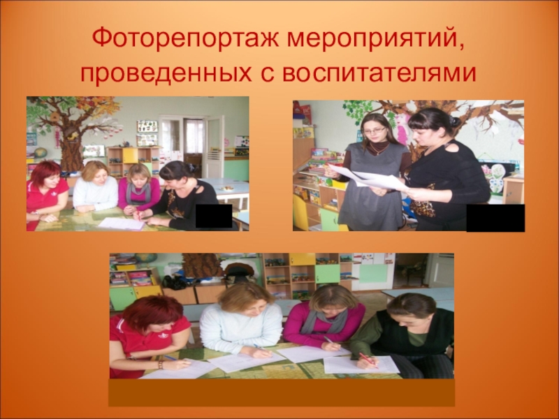 Слайд 26Фоторепортаж мероприятий, проведенных с воспитателями