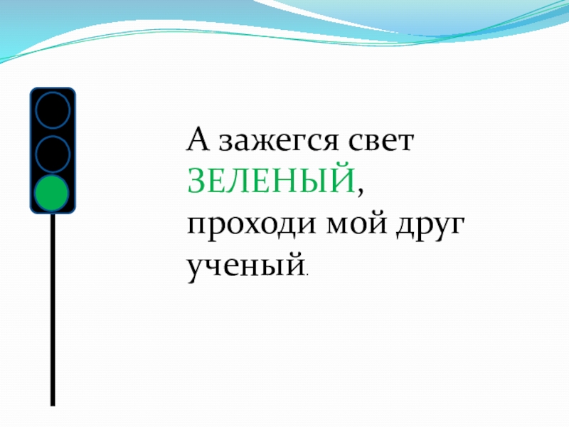 Слайд 4А зажегся свет ЗЕЛЕНЫЙ, проходи мой друг ученый.