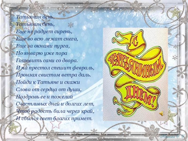 Татьянин день — церковный праздник, почитающий римскую мученицу Татиану — девушку, отдавшую жизнь